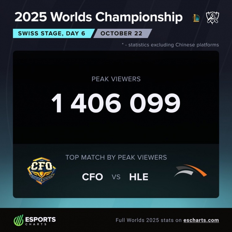数据统计:CFO vs HLE海外最高观看人数为140W